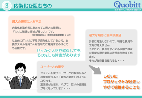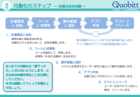 アンケートの回答に基づいて編集された 『内製化ガイド(内製化のススメ方)』 が届きます。 |